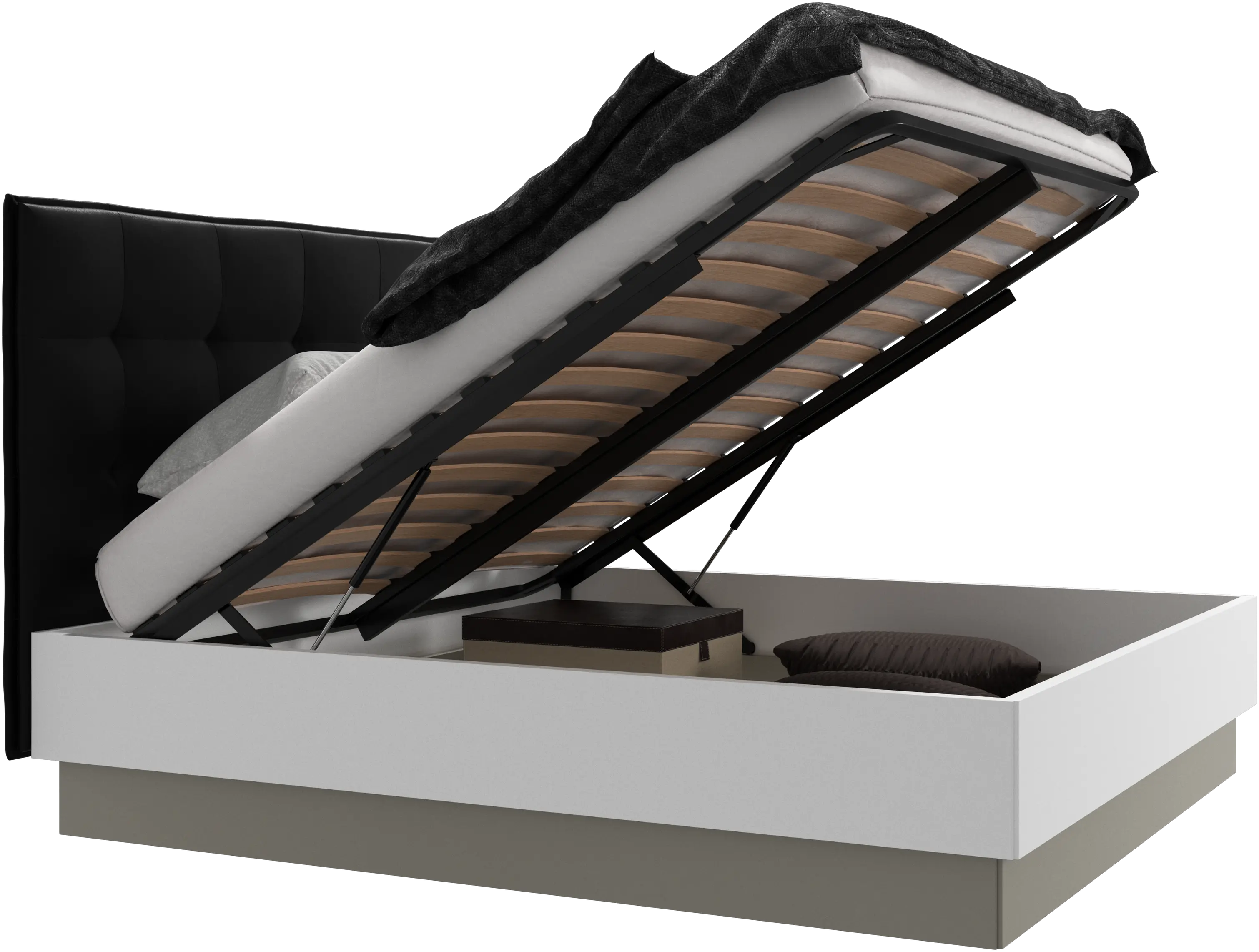 Lugano storage bed with lift-up frame and slats, excl. mattress